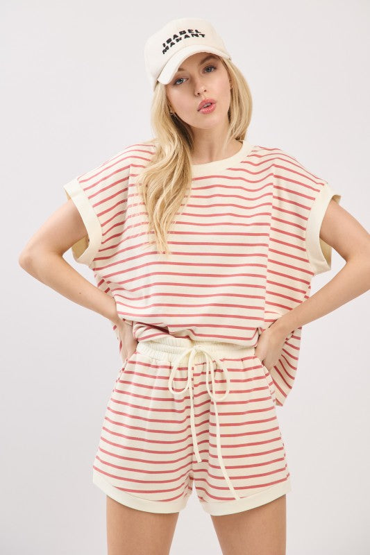 Candy Striped Ladies Short Set