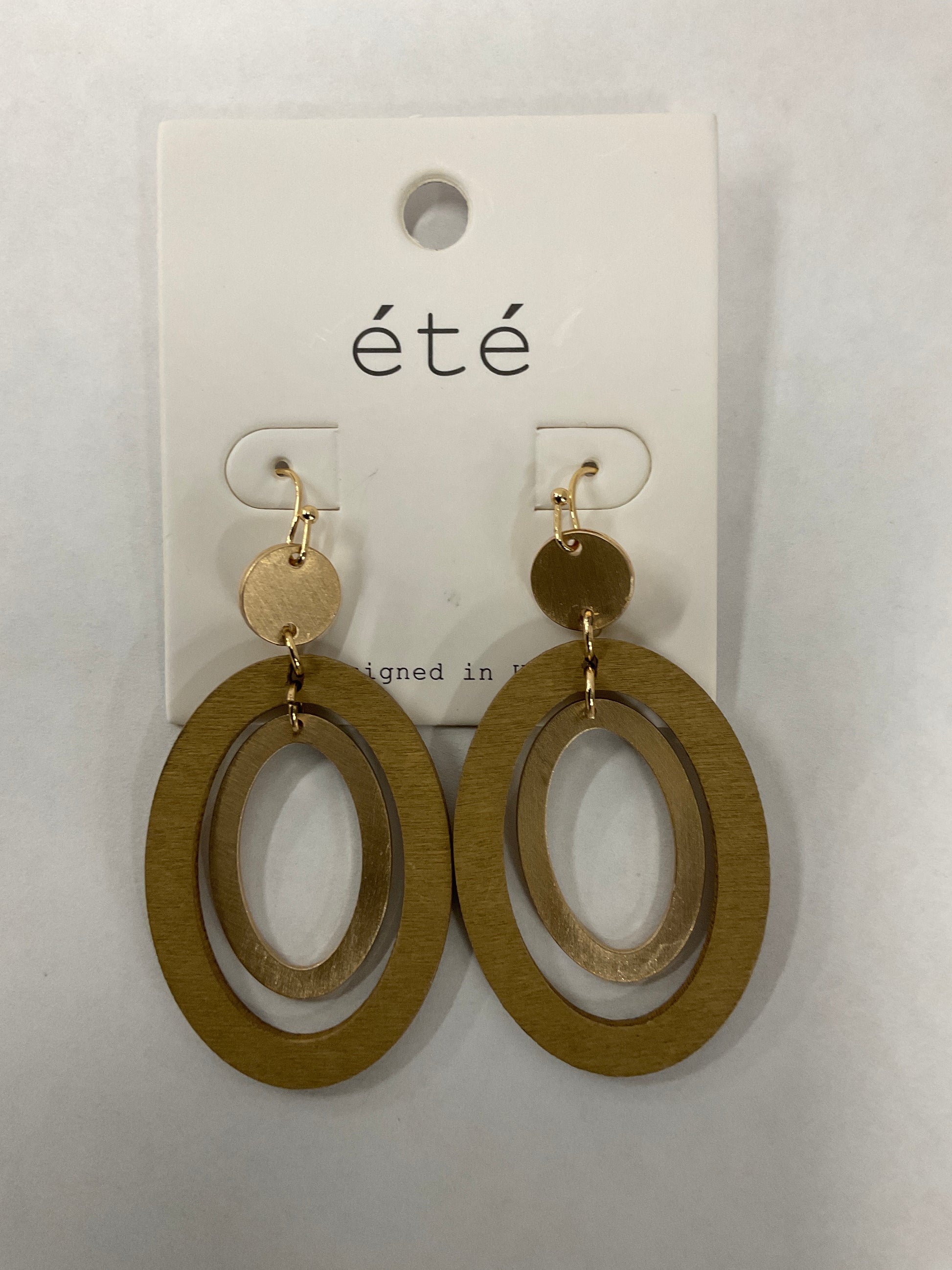 These teardrop earrings have a wooden and gold metal shape and they are very light weight